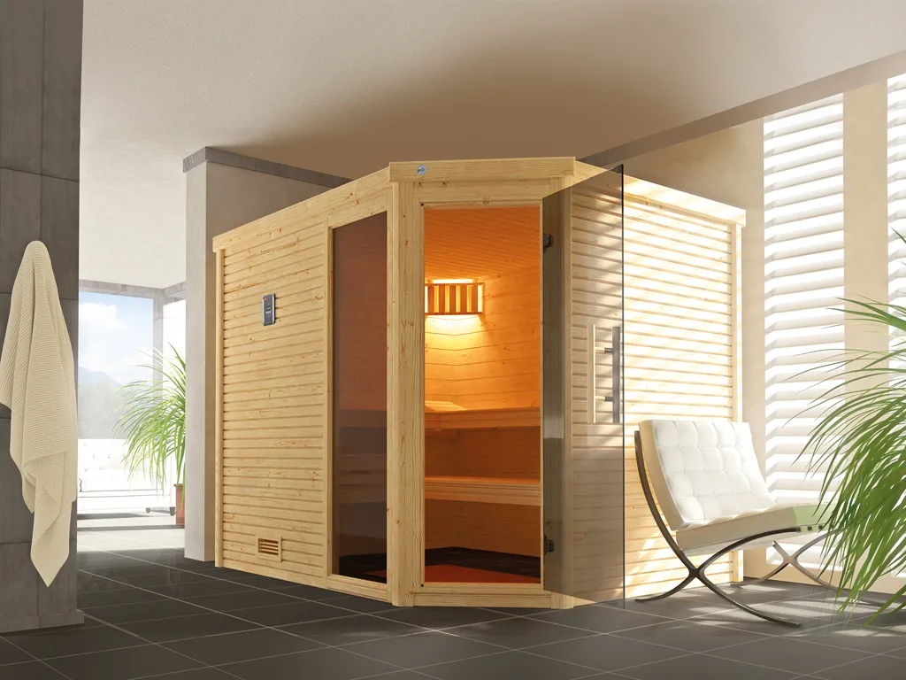 Unsere Wellnessartikel (Saunen, Saunahäuser, Saunafässer, Kotas, Infrarotkabinen, Saunaöfen etc.) dürfen nur für den privathäuslichen Gebrauch verwendet werden! Saunaöfen und dazugehörige Steuerelemente dürfen nur durch einen örtlich zugelassenen Elektroinstallateur mittels festem Anschluss an das Netz angeschlossen werden. Ausnahme: 230 Volt Plug-&-Play-Saunaöfen. Die Mindestsicherheitsabstände vom Ofen zur Wand und vom Ofen zum Ofenschutz müssen unbedingt eingehalten werden. Bei 9-kW-Öfen muss die Höhe des Ofenschutzes angepasst werden. Bitte beachte zu den obig genannten Hinweisen die beigefügten Montageanleitungen.