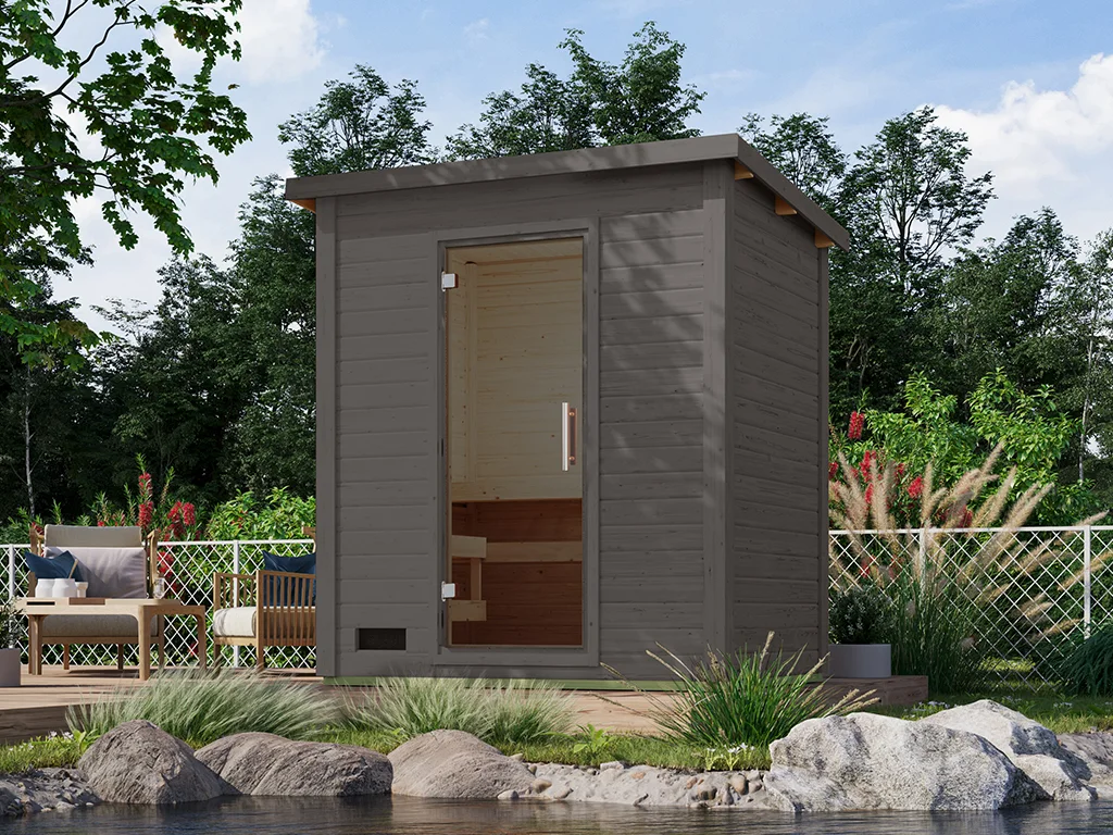 Erlebe pure Entspannung mit deiner Gartensauna: Hochwertige Materialien und attraktives Design sorgen für ein einzigartiges Saunaerlebnis direkt in deinem Garten. Der Saunaraum ist mit einer Fläche von 184 x 134 cm ausreichend dimensioniert. Hier können 1-2 Personen gleichzeitig saunieren.