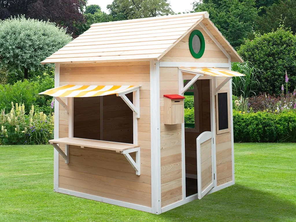 Bitte beachte, dass der Aufbau/Anstrich dieses Spielhauses nur bei folgenden Witterungsbegebenheiten erfolgen sollte: Temperaturen über mehrere Tage hinweg über + 5 °C und relativer Luftfeuchtigkeit < 80 %. Andernfalls könnte sich das Holz deines Spielhauses verziehen.
