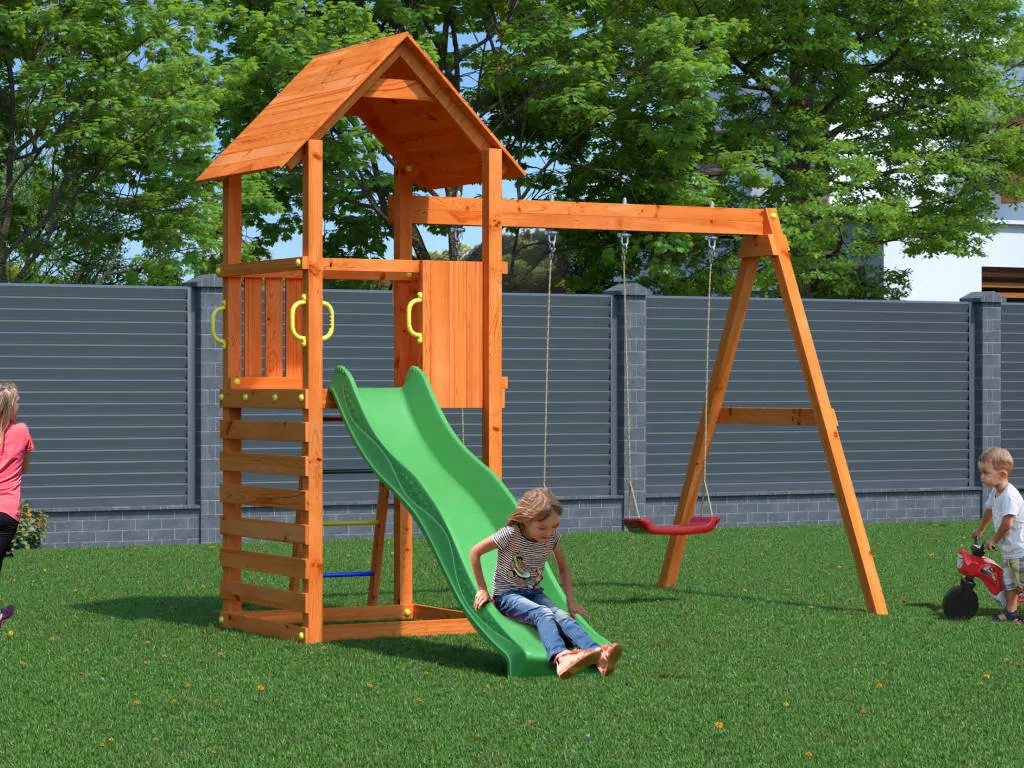 Für noch mehr Abwechselung sorgt der Anbau mit zwei Schaukeln, der mehr Platz zum Spielen bietet und problemlos auch von mehreren Kindern gleichzeitig benutzt werden kann.