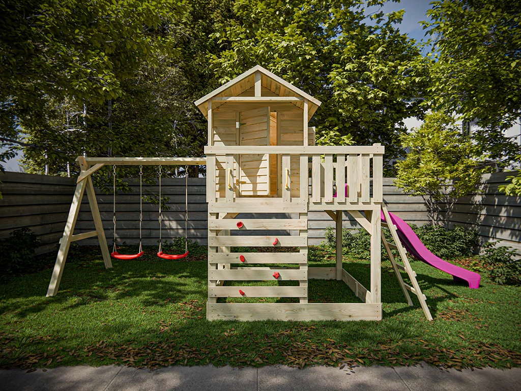 Stelzenhaus Noah kesseldruckimprägniert inkl. Doppelschaukel und Rutsche pink