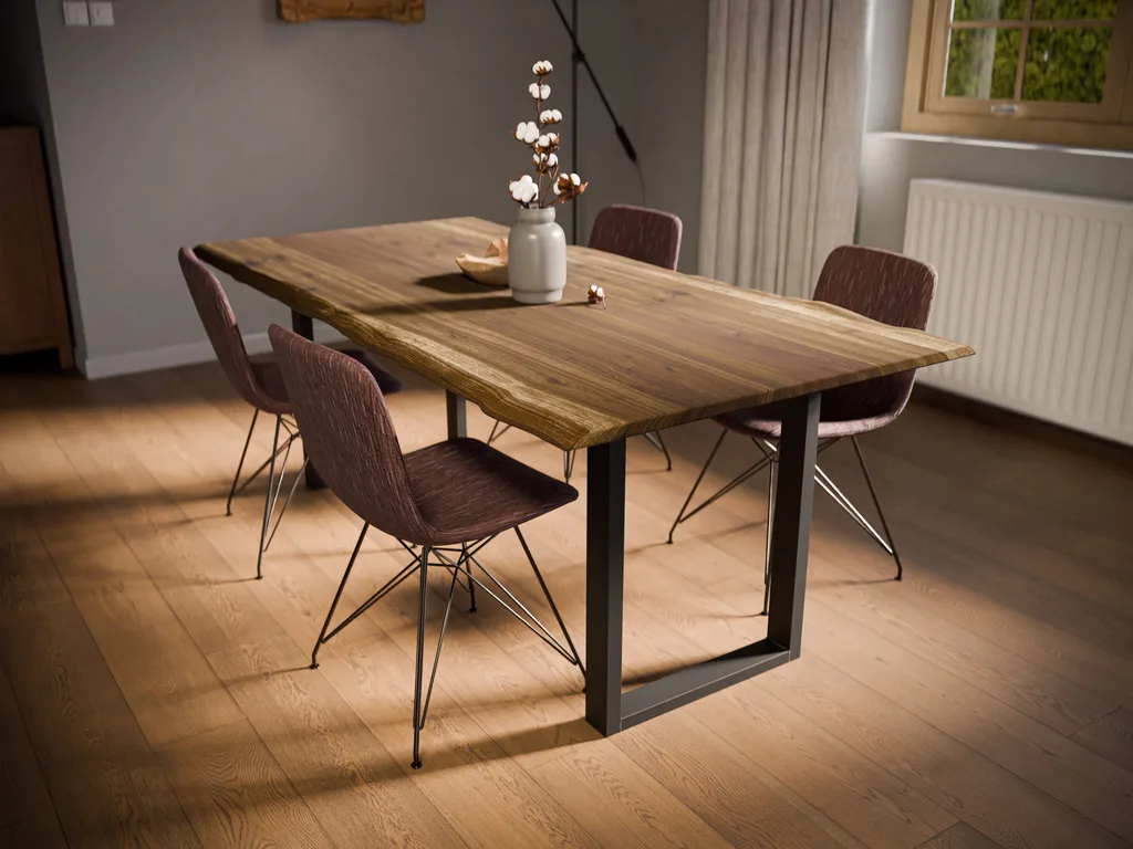 Tischplatte mit Waldkante aus Akazie SPARSET inkl. Metalluntergestell Ironline Fineline U