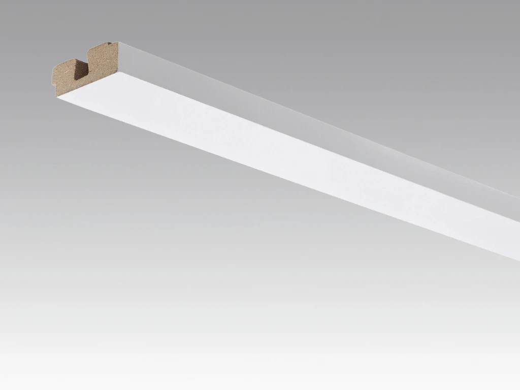 Die hochglänzende Oberfläche sorgt für einen sauberen, reflektierenden Look und lässt sich gut mit glatten Wandflächen oder zeitgemäßen Materialien kombinieren. Perfekt, um Übergänge dezent zu kaschieren und dem Raum ein stimmiges Finish zu verleihen.