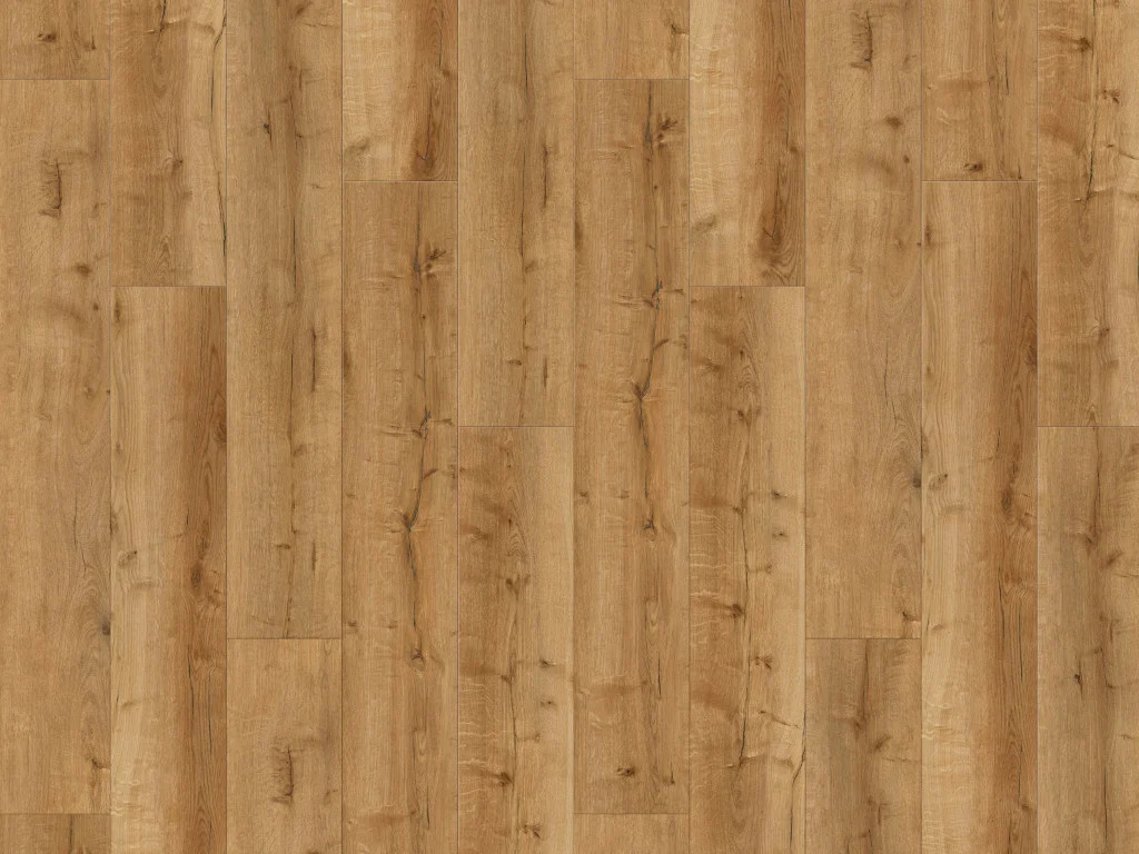 Die typische Eichenholz-Maserung des Dekors strahlt zeitlose Klasse und behagliche Wärme aus. Landhausdielen sind perfekt für alle, die den authentischen Holzcharakter ihres Bodens hervorheben möchten – für ein rustikales Flair. Mit seiner natürlichen Maserung ist dieser Boden der ideale Partner für nahezu jeden Wohntrend. Die an vier Seiten umlaufende Fase strukturiert das Verlegebild und verleiht ihm ein gleichmäßiges Muster. Die strukturierte Oberfläche orientiert sich an der Maserung und verleiht der Diele zusätzlich eine haptische Komponente.