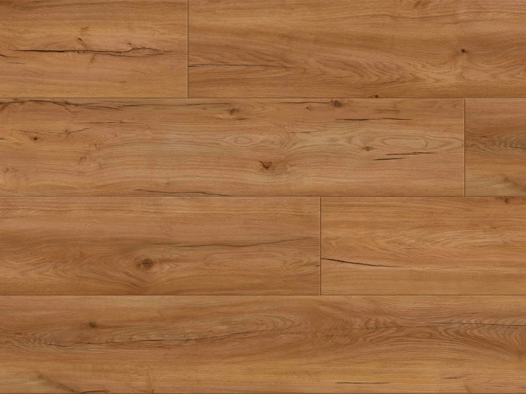 Das Dekor in authentischer Eichenholzoptik vermittelt fühlbare Wärme und Behaglichkeit. Die rustikal wirkenden Landhausdielen betonen mit ihrer 1-Stab-Optik den traditionellen Charakter der Holzoptik. Die 4-seitig umlaufende V-Fuge verstärkt den Charakter der Diele und gibt ihr mehr Struktur. Dieser Boden erhält durch die strukturierte Oberfläche einen täuschend echten Holzlook, der vom Original kaum zu unterscheiden ist.