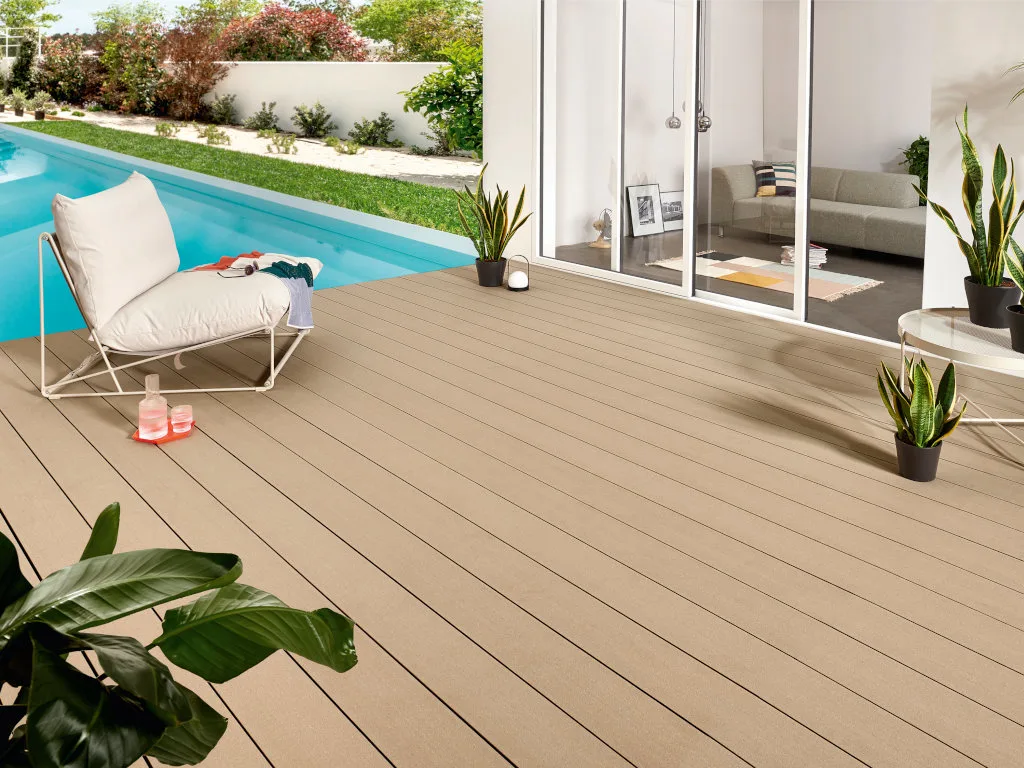 WPC (Wood Plastic Composite) ist eine Verbindung aus ca. 70% Holz und 30% Kunststoff mit vielen Vorteilen. Dieser Verbundwerkstoff ist nicht nur leicht zu pflegen und reinigen, sondern auch witterungsbeständig, form- und farbstabil, splitterfrei und rutschfest – der ideale Terrassenbelag. Außerdem zeichnet er sich durch die hohe Dichte aus, die ihn gut vor Insektenbefall schützt.
