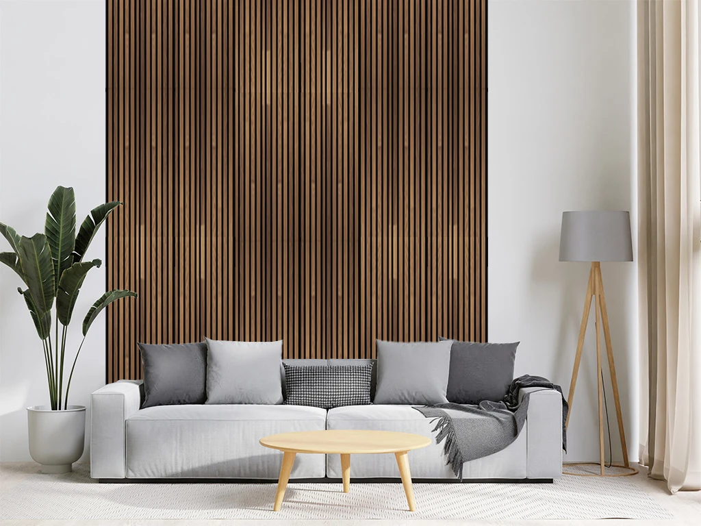 Bei den Lamellen handelt es sich um hochwertige Massivholzlamellen, die dank der Mattlackierung eine einfache Reinigung und Pflege der Paneele ermöglichen. Auch die Montage der Akustikpaneele ist relativ unkompliziert: Du kannst sie entweder kleben oder anschrauben.