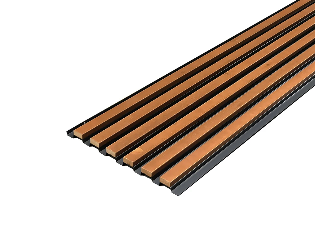 Diese hochwertigen AluHolz-Paneele bestehen aus recycelbaren Materialien und überzeugen mit einer langen Lebensdauer. Die Trägerplatte ist aus robustem Aluminium gefertigt und sorgt für Stabilität. Die Lamellen bestehen aus thermobehandeltem Fichtenholz, was durch seine braune Farbe nicht nur eine ansprechende Optik, sondern auch eine erhöhte Widerstandsfähigkeit gegen Wind und Wetter gewährleistet. Die Montage erfolgt einfach und sicher mittels Schrauben.