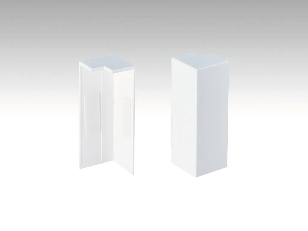 Im Päckchen enthalten sind 2 Außenecken in Weiß, geeignet für MEISTER Sockelleisten mit Profil 9 PK/19 PK.