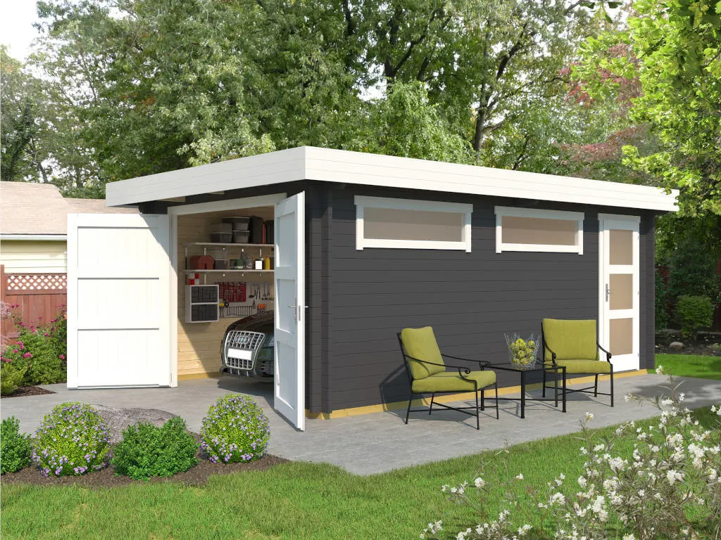 | Lieferumfang | Einzelgarage 441 graphitgrau, Holztor, 1 Zusatztür, 2 feststehende Fenster |