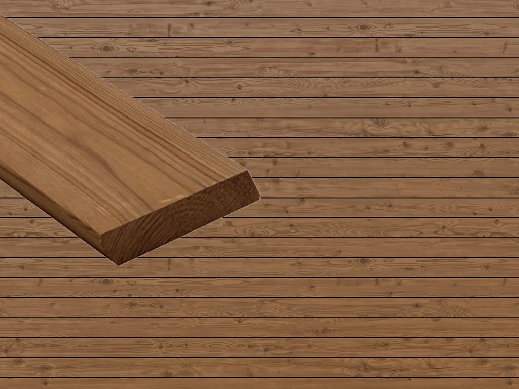 Die Rhombusleiste aus Thermo-Kiefer ist baugleich mit Lunawood. Die Oberfläche ist gehobelt, sodass die typische Holzzeichnung wunderbar zur Geltung kommt.