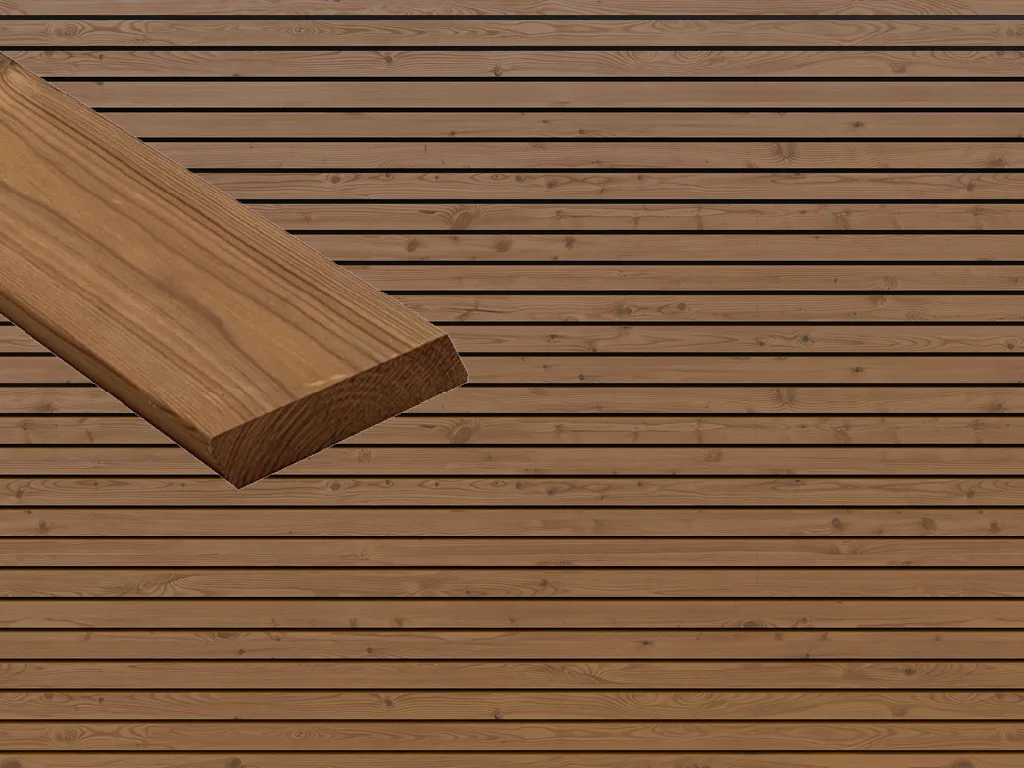 Die Rhombusleiste aus Thermo-Kiefer ist baugleich mit Lunawood. Die Oberfläche ist gehobelt, sodass die typische Holzzeichnung wunderbar zur Geltung kommt.