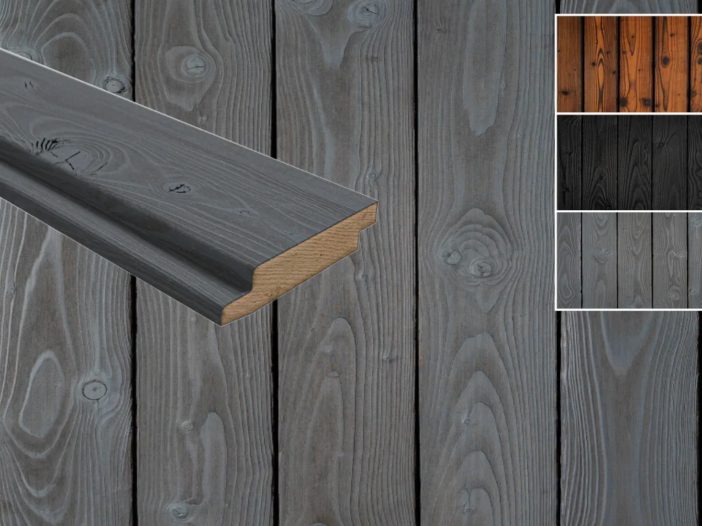 Bitte beachten: Da die Fassadenhölzer mit Feuer behandelt wurden, können sich Rußrückstände auf der Oberfläche befinden, die bei Berührung auf Kleidung und Hände abfärben können.