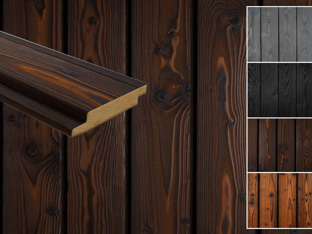 Bitte beachten: Da die Fassadenhölzer mit Feuer behandelt wurden, können sich Rußrückstände auf der Oberfläche befinden, die bei Berührung auf Kleidung und Hände abfärben können.