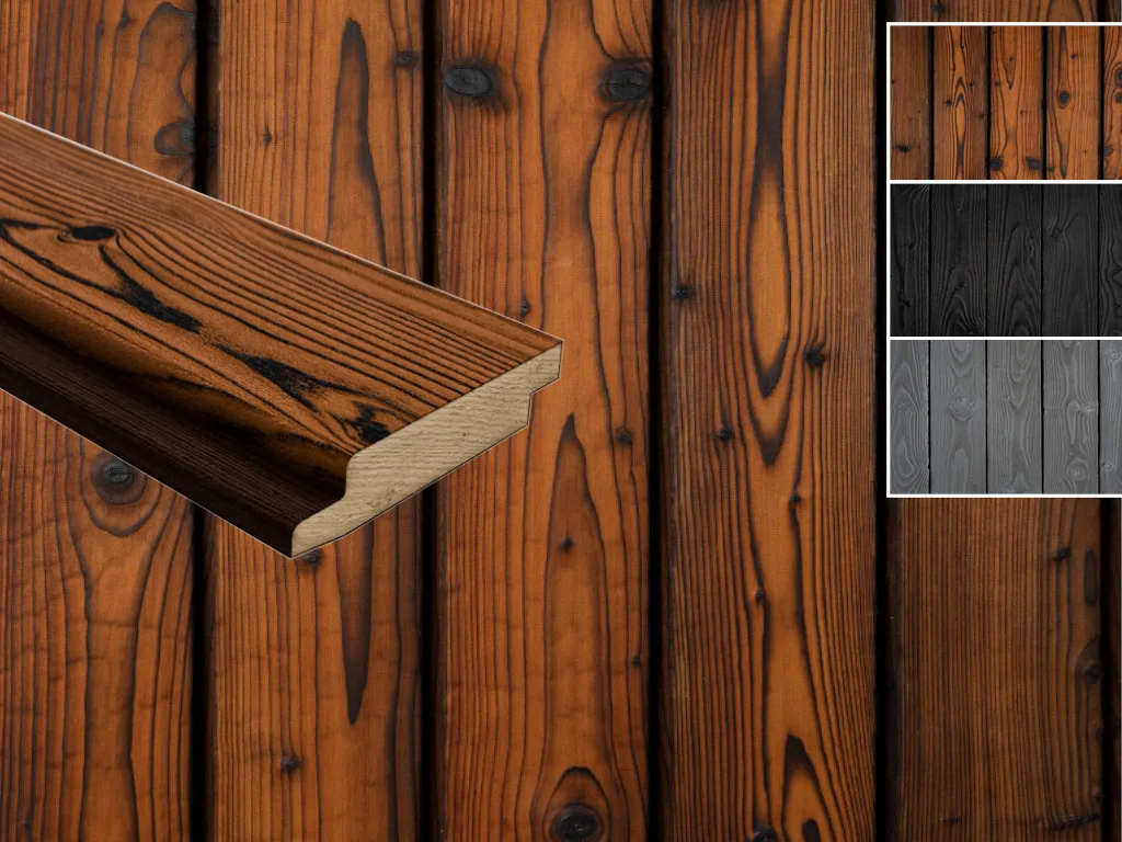 Bitte beachten: Da die Fassadenhölzer mit Feuer behandelt wurden, können sich Rußrückstände auf der Oberfläche befinden, die bei Berührung auf Kleidung und Hände abfärben können.