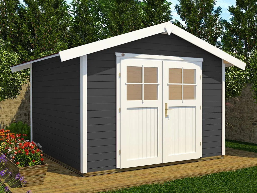 Setze ein farbiges Highlight in Deinem Garten. Dieses Gartenhaus überzeugt nicht nur durch seine Optik, der Holzschutzlack/-lasur in Anthrazit schützt obendrein vor Schädlingen und Witterungseinflüssen und macht das Holz langlebiger und robuster. So ist auch nach längerer Zeit kein weiteres Streichen nötig.