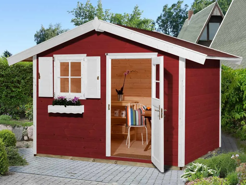 Setze ein farbiges Highlight in Deinem Garten. Dieses Gartenhaus überzeugt nicht nur durch seine Optik, der Holzschutzlack/-lasur in Schwedenrot schützt obendrein vor Schädlingen und Witterungseinflüssen und macht das Holz langlebiger und robuster. So ist auch nach längerer Zeit kein weiteres Streichen nötig.