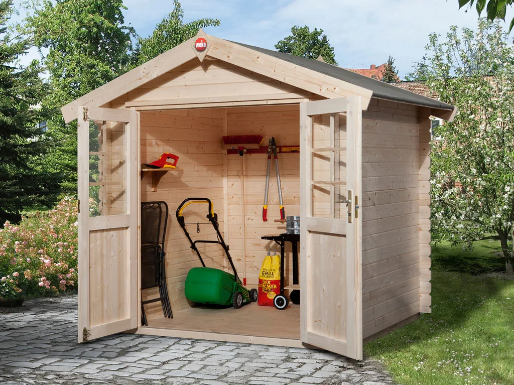 Dieses klassische Gartenhaus überzeugt mit seiner Praktikabilität. Dank seines traditionsbewussten, unaufdringlichen Designs fügt es sich in jede Umgebung perfekt ein und strahlt dabei Gemütlichkeit und Heimeligkeit aus. Ob als Unterstellplatz für Gartengeräte, Grill, Fahrrad oder als Hobbyraum - das klassische Gartenhaus bietet Raum für Deine individuellen Bedürfnisse.