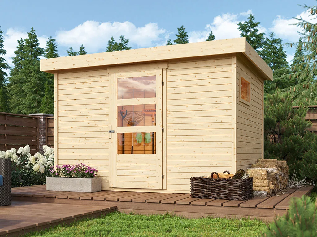Das naturbelassene Holz sorgt für ein natürliches und zeitloses Aussehen. Außerdem ermöglicht Dir das unbehandelte Holz, das Äußere des Gartenhauses ganz nach Deinen eigenen Wünschen zu gestalten.