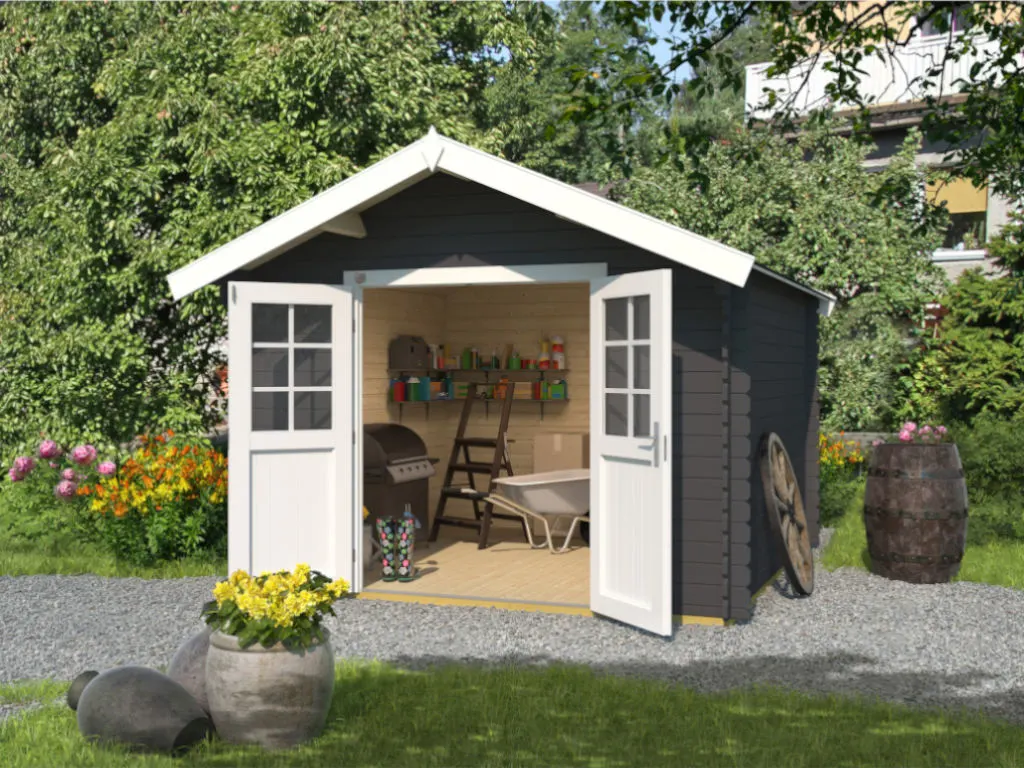 Gartenhaus Blockbohlenhaus 209 Gr. 3 28 mm graphitgrau