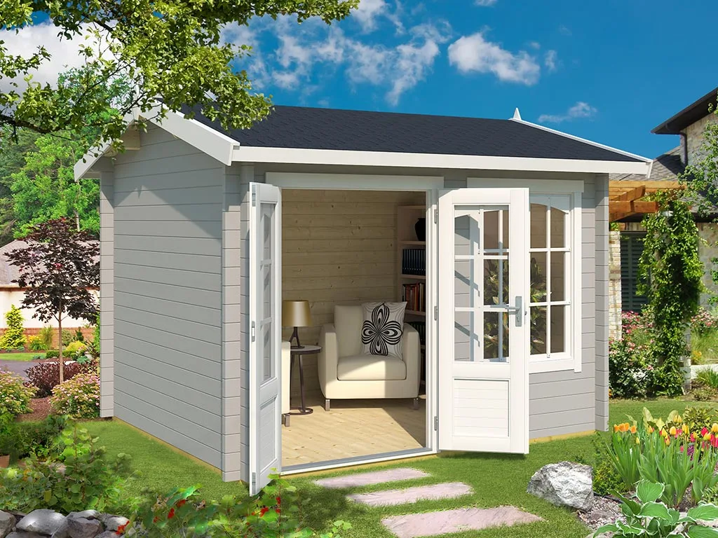 Die Wandstärke von 44 mm sorgt für gute Stabilität und Langlebigkeit. Dank der Bohlenstärke ist das Gartenhaus im Winter frostsicher, und im Sommer hat es gute wärmeisolierende Eigenschaften, was es zu einem perfekten Übernachtungsort für Gäste macht. Auch Pflanzen können in diesem Gartenhaus problemlos überwintern.