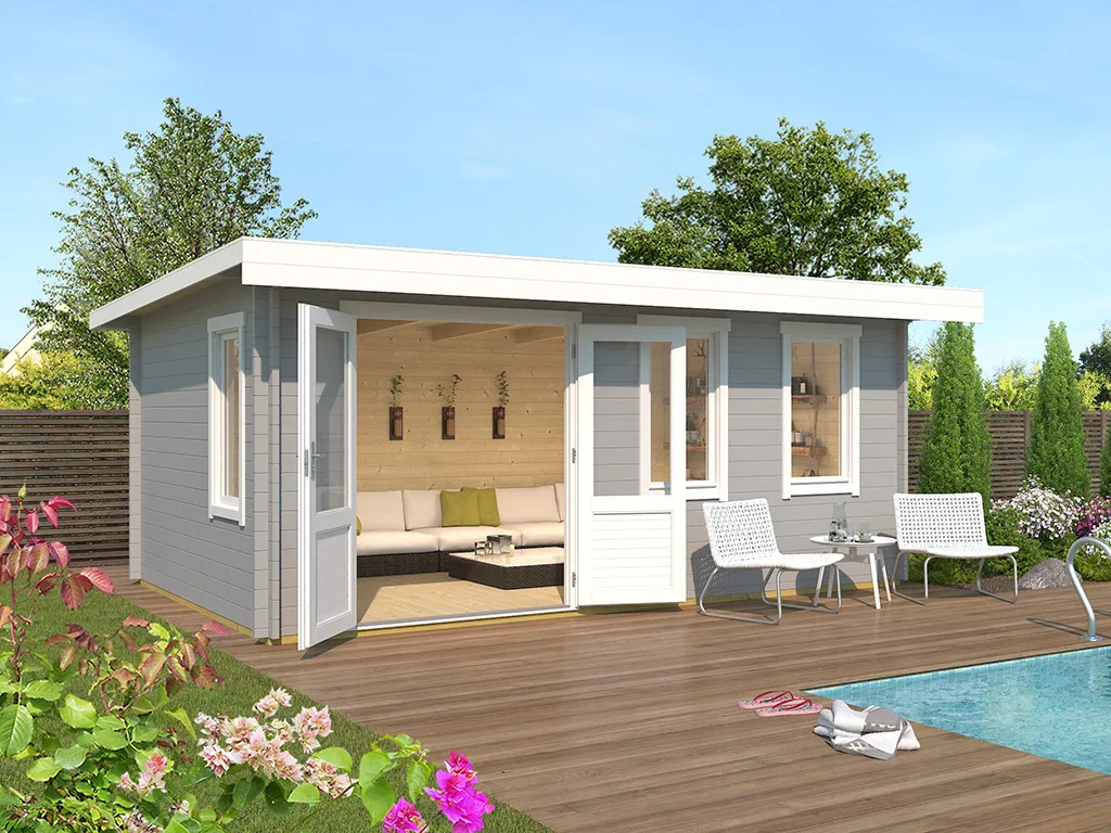 Die Wandstärke von 40 mm sorgt für gute Stabilität und Langlebigkeit. Dank der Bohlenstärke ist das Gartenhaus im Winter frostsicher, und im Sommer hat es gute wärmeisolierende Eigenschaften, was es zu einem perfekten Übernachtungsort für Gäste macht. Auch Pflanzen können in diesem Gartenhaus problemlos überwintern.