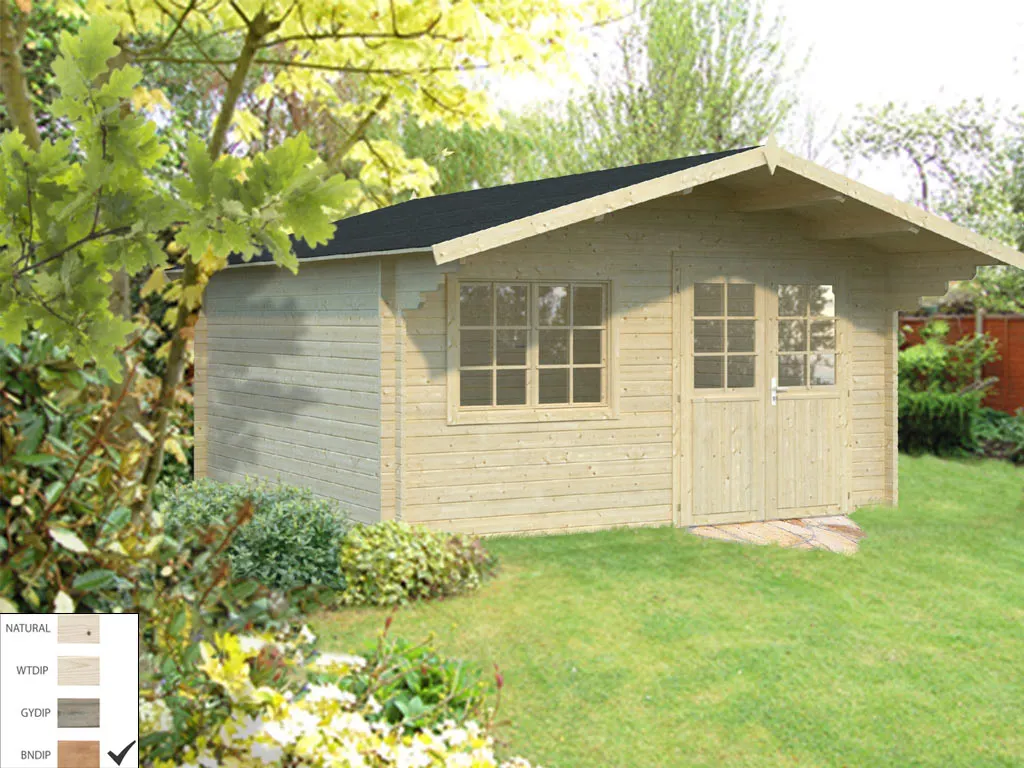 Als der Klassiker unter den Gartenhäusern verfügt ein Blockbohlenhaus über eine sehr robuste Bauweise, gepaart mit einer besonderen, natürlichen Ästhetik. Dabei orientiert sich die Bohlenbauweise an der traditionellen Blockhütte. Die Wände setzen sich aus vorgefertigten Holzbohlen zusammen, die dank einer Nut- und Feder-Verbindung ohne größere Anstrengungen aufeinander gesteckt werden können. Damit ist ein einfacher und schneller Auf- und Abbau garantiert. An der Kopfseite des Gartenhauses sorgt die charakteristische Verkämmung (spezielle Einkerbungen im Holz) nicht nur für eine schöne Optik, sondern hält das ganze Konstrukt auch zusammen und macht es absolut wind- und wetterfest.