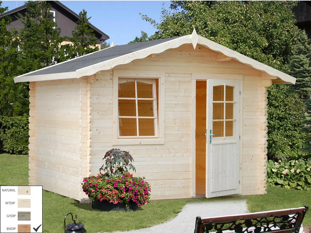 Das Holz ist tauchimprägniert und besitzt eine hohe Beständigkeit. Auch gewährt diese Imprägnierung Schutz vor Feuchtigkeit und UV-Strahlung sowie Befall durch Schädlinge. So wird die Langlebigkeit des Holzes deutlich erhöht und die Freude am Gartenhaus verlängert.