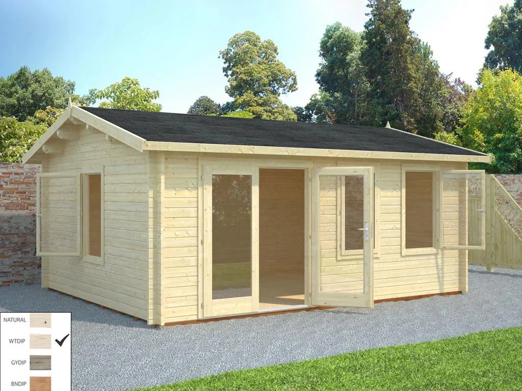 Die Wandstärke von 44 mm sorgt für gute Stabilität und Langlebigkeit. Dank der Bohlenstärke ist das Gartenhaus im Winter frostsicher, und im Sommer hat es gute wärmeisolierende Eigenschaften, was es zu einem perfekten Übernachtungsort für Gäste macht. Auch Pflanzen können in diesem Gartenhaus problemlos überwintern.