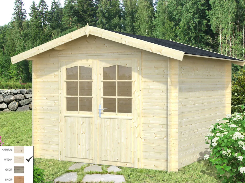 Das Holz ist tauchimprägniert und besitzt eine hohe Beständigkeit. Auch gewährt diese Imprägnierung Schutz vor Feuchtigkeit und UV-Strahlung sowie Befall durch Schädlinge. So wird die Langlebigkeit des Holzes deutlich erhöht und die Freude am Gartenhaus verlängert.