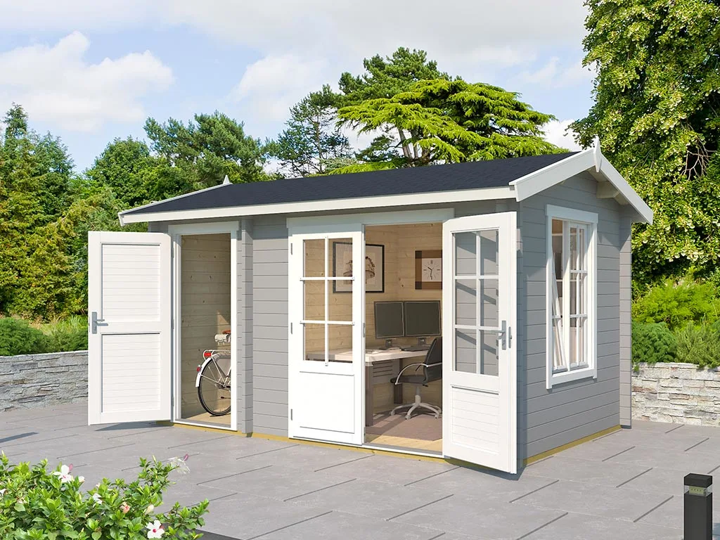 Die Wandstärke von 44 mm sorgt für gute Stabilität und Langlebigkeit. Dank der Bohlenstärke ist das Gartenhaus im Winter frostsicher, und im Sommer hat es gute wärmeisolierende Eigenschaften, was es zu einem perfekten Übernachtungsort für Gäste macht. Auch Pflanzen können in diesem Gartenhaus problemlos überwintern.
