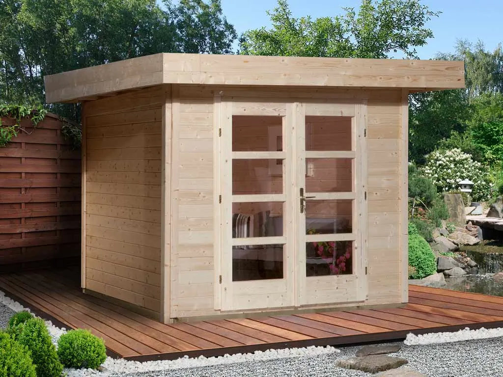 Das naturbelassene Holz sorgt für ein natürliches und zeitloses Aussehen. Außerdem ermöglicht Dir das unbehandelte Holz, das Äußere des Gartenhauses ganz nach Deinen eigenen Wünschen zu gestalten.
