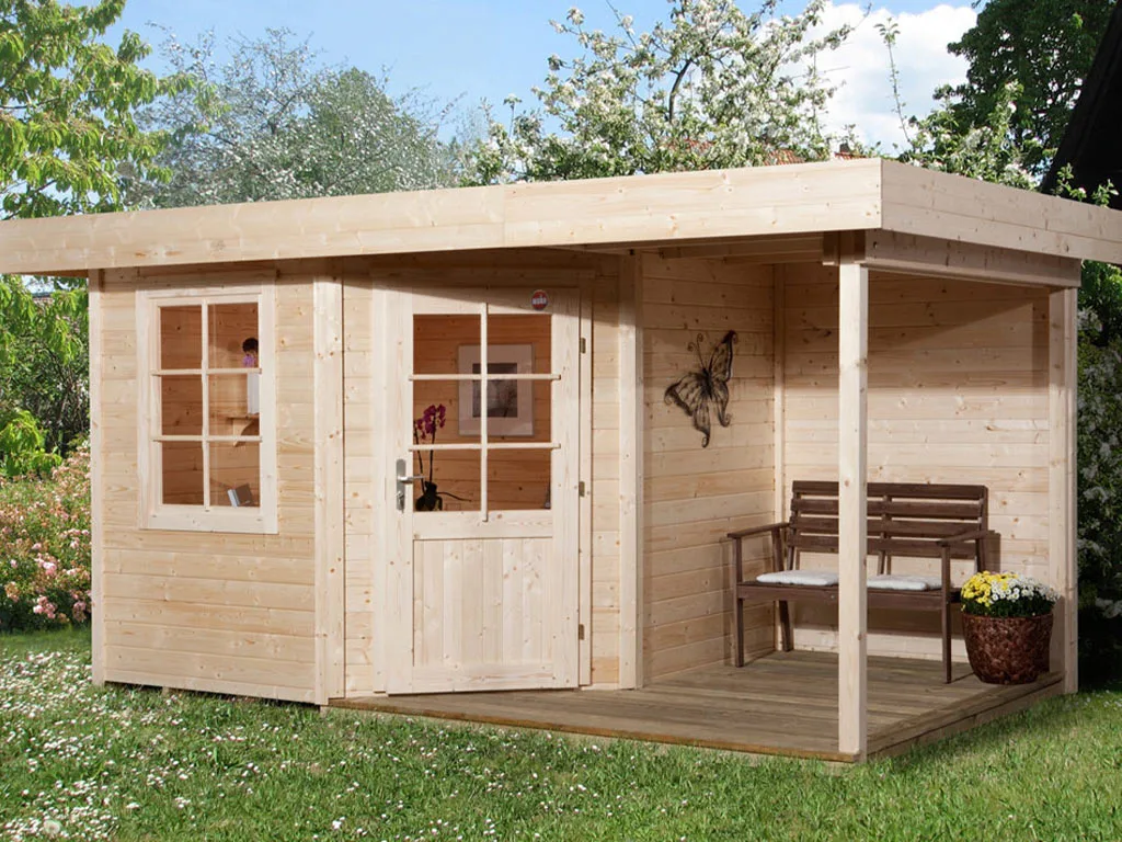Das Gartenhaus mit Anbaudach und Rückwand ist sehr vielseitig. Der durch das Anbaudach geschaffene zusätzliche Stauraum eignet sich optimal als Lagerplatz für Gartenutensilien oder als Sitzbereich zum gemütlichen Verweilen. Dank Überdachung und integrierter Rückwand sind Geräte und Gartenmöbel optimal vor Wind und Wetter geschützt.
