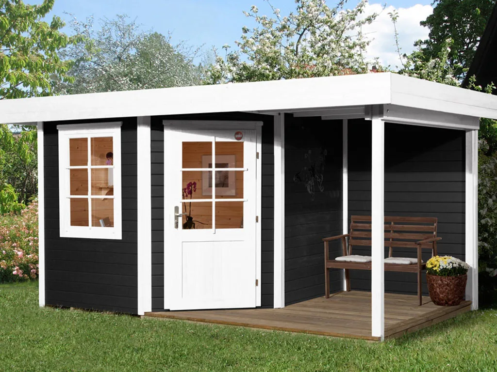 Das Gartenhaus mit Anbaudach und Rückwand ist sehr vielseitig. Der durch das Anbaudach geschaffene zusätzliche Stauraum eignet sich optimal als Lagerplatz für Gartenutensilien oder als Sitzbereich zum gemütlichen Verweilen. Dank Überdachung und integrierter Rückwand sind Geräte und Gartenmöbel optimal vor Wind und Wetter geschützt.
