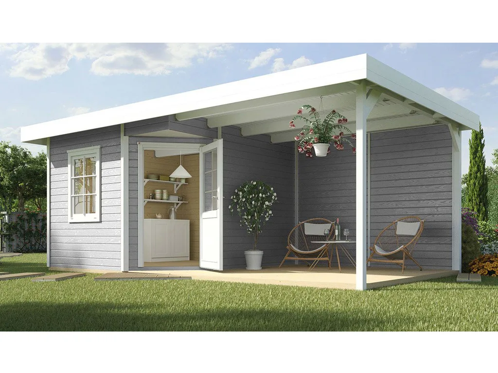 Das Gartenhaus mit Anbaudach und Rückwand ist sehr vielseitig. Der durch das Anbaudach geschaffene zusätzliche Stauraum eignet sich optimal als Lagerplatz für Gartenutensilien oder als Sitzbereich zum gemütlichen Verweilen. Dank Überdachung und integrierter Rückwand sind Geräte und Gartenmöbel optimal vor Wind und Wetter geschützt.