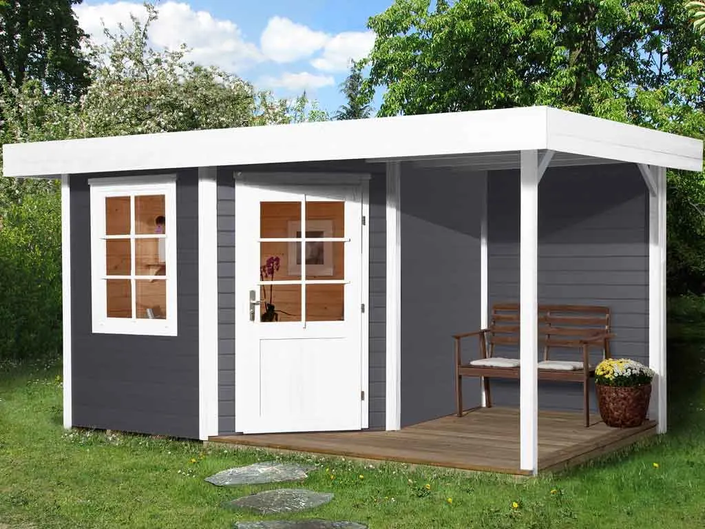 Das Gartenhaus mit Anbaudach und Rückwand ist sehr vielseitig. Der durch das Anbaudach geschaffene zusätzliche Stauraum eignet sich optimal als Lagerplatz für Gartenutensilien oder als Sitzbereich zum gemütlichen Verweilen. Dank Überdachung und integrierter Rückwand sind Geräte und Gartenmöbel optimal vor Wind und Wetter geschützt.