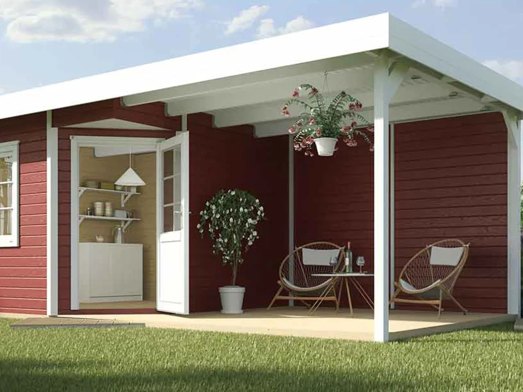 Das Gartenhaus mit Anbaudach und Rückwand ist sehr vielseitig. Der durch das Anbaudach geschaffene zusätzliche Stauraum eignet sich optimal als Lagerplatz für Gartenutensilien oder als Sitzbereich zum gemütlichen Verweilen. Dank Überdachung und integrierter Rückwand sind Geräte und Gartenmöbel optimal vor Wind und Wetter geschützt.