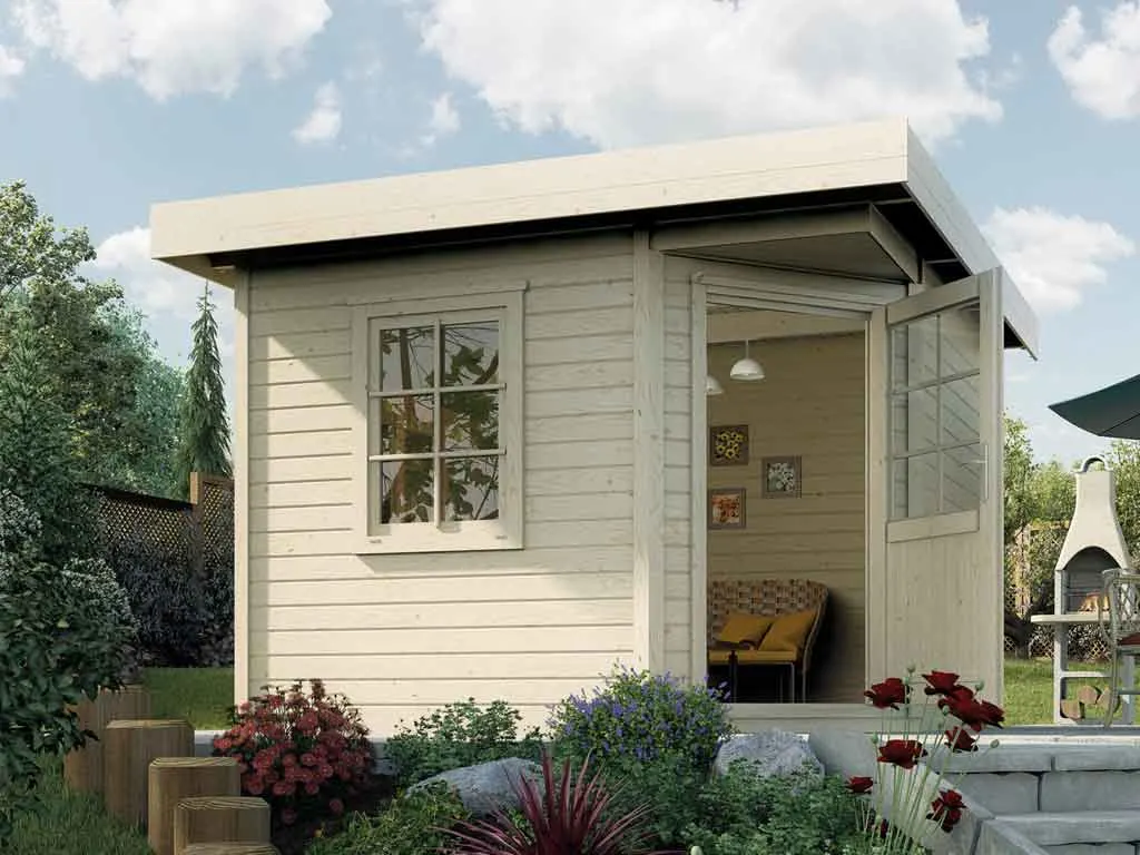 Das naturbelassene Holz sorgt für ein natürliches und zeitloses Aussehen. Außerdem ermöglicht Dir das unbehandelte Holz, das Äußere des Gartenhauses ganz nach Deinen eigenen Wünschen zu gestalten.
