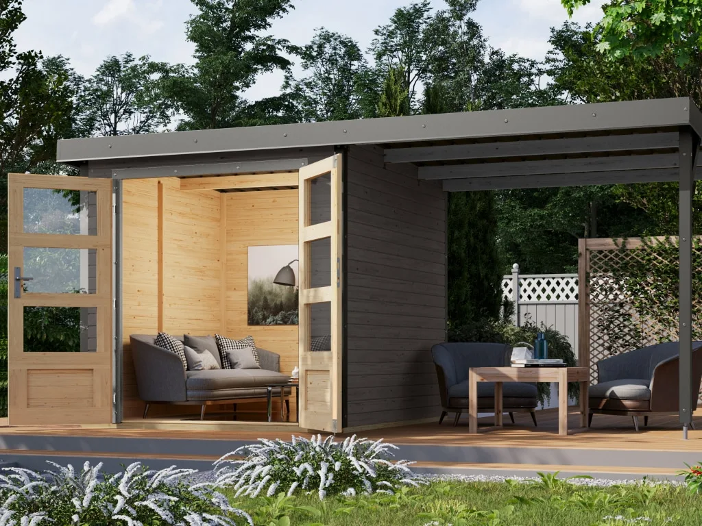KARIBU Gartenhaus Jupiter 2 19 mm naturbelassen / graualuminium
