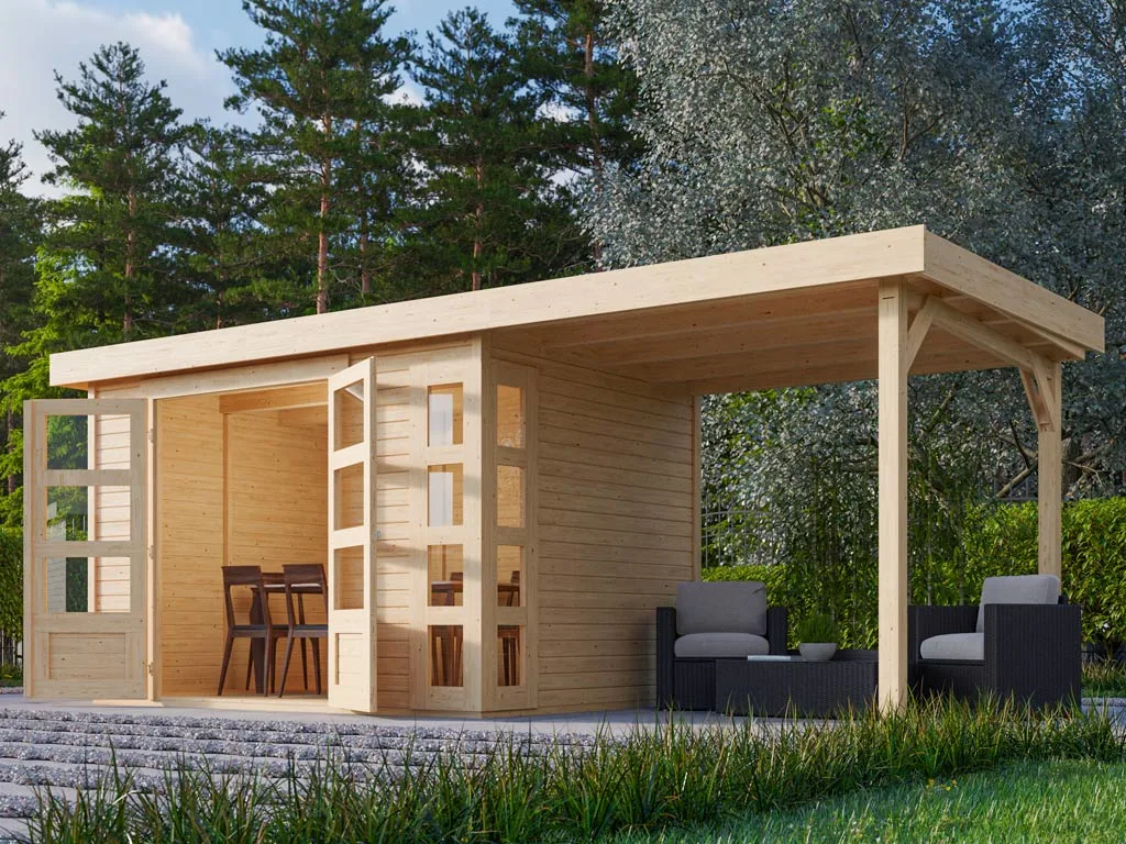 Gartenhaus Kerko 4 19 mm naturbelassen inkl. 2,4 m Anbaudach