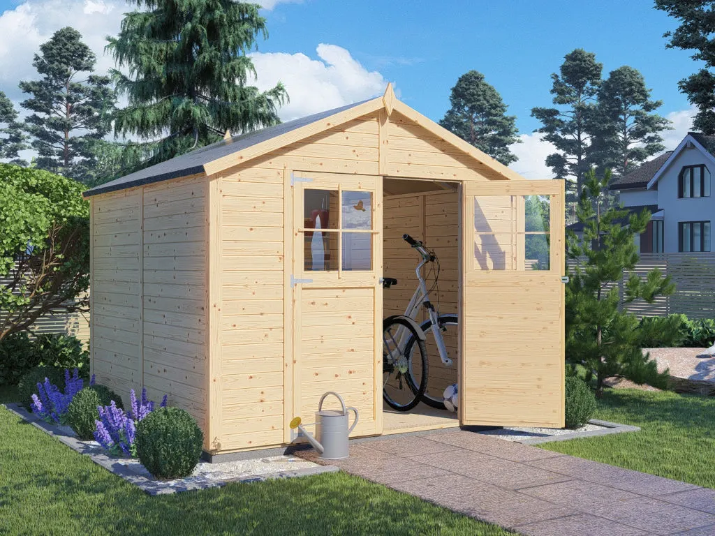 Mit seiner Wandstärke von 19 mm ist das Gartenhaus ideal als Stellplatz für Fahrräder, Gartengeräte und -utensilien geeignet. Leicht zu montieren, reicht die einfache Ausführung als Unterstand oder Abstellraum vollkommen aus.