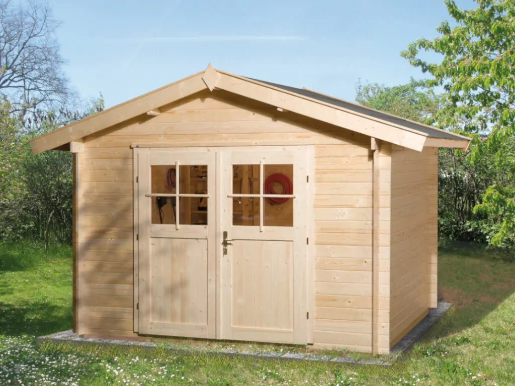 Als der Klassiker unter den Gartenhäusern verfügt ein Blockbohlenhaus über eine sehr robuste Bauweise, gepaart mit einer besonderen, natürlichen Ästhetik. Dabei orientiert sich die Bohlenbauweise an der traditionellen Blockhütte. Die Wände setzen sich aus vorgefertigten Holzbohlen zusammen, die dank einer Nut- und Feder-Verbindung ohne größere Anstrengungen aufeinander gesteckt werden können. Damit ist ein einfacher und schneller Auf- und Abbau garantiert. An der Kopfseite des Gartenhauses sorgt die charakteristische Verkämmung (spezielle Einkerbungen im Holz) nicht nur für eine schöne Optik, sondern hält das ganze Konstrukt auch zusammen und macht es absolut wind- und wetterfest.