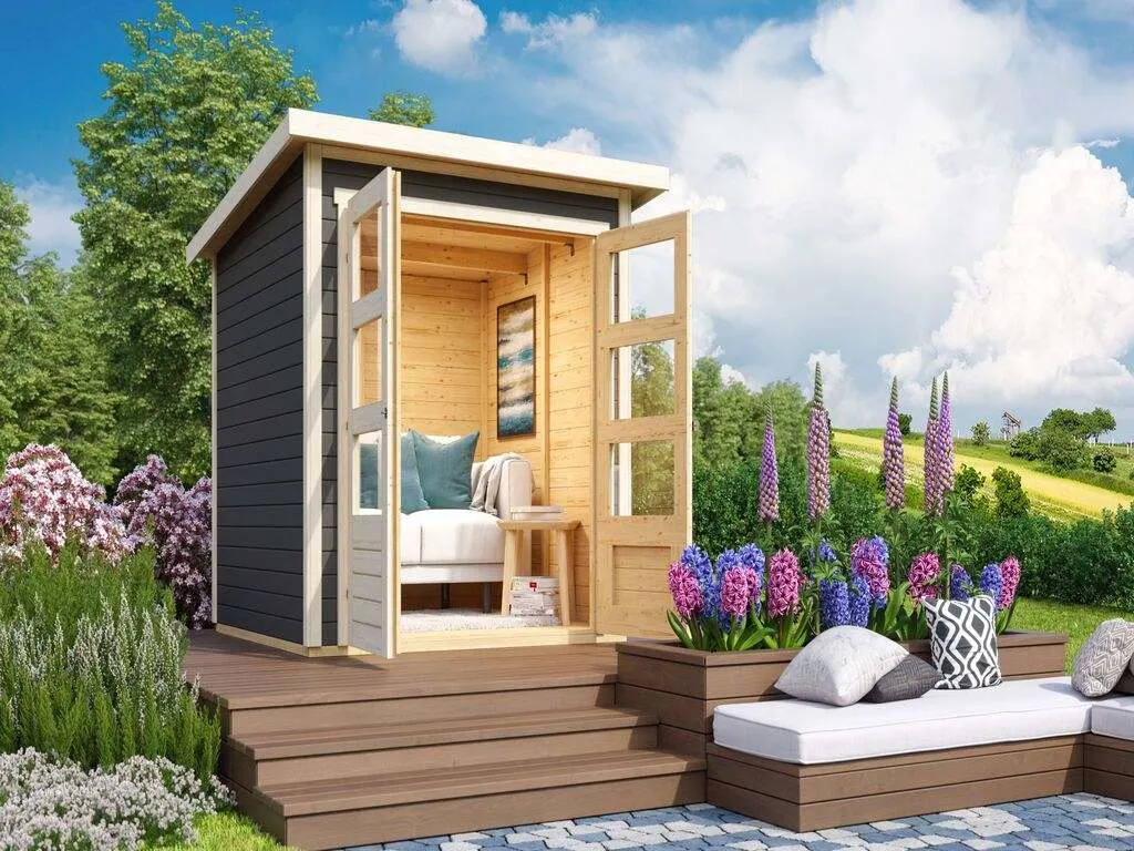 Ein modernes Pultdach verleiht deinem Gartenhaus eine stilvolle, elegante Optik. Durch nur eine geneigte Dachfläche ist die Nutzungsfläche im Inneren des Gartenhauses deutlich weniger eingeschränkt und der Verlust an Nutzraum gering. Zudem lässt die Neigungsseite des Pultdaches das Regenwasser gut abfließen und es ist die Montage von nur einer Regenrinne nötig.