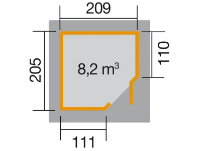 Das Sockelmaß beschreibt im Wesentlichen die Grundfläche des Gartenhauses. Gemessen wird hierbei von Außenwandmitte zu Außenwandmitte. Das Sockelmaß ist Grundlage für den Bau eines passenden Fundaments.
