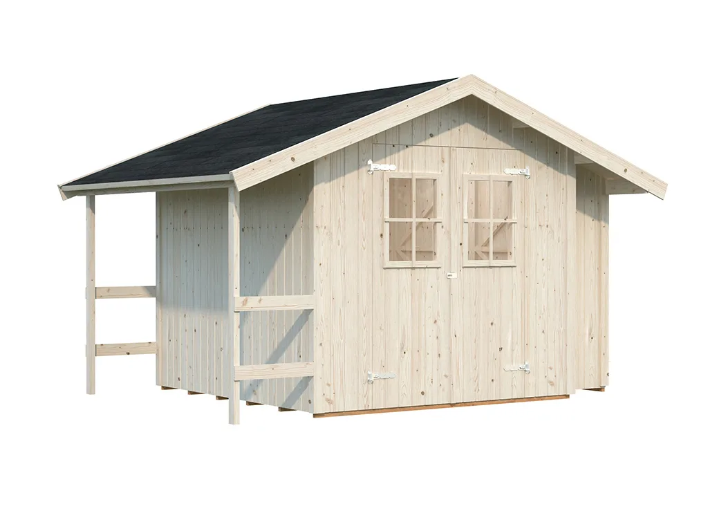 Das hochwertig gearbeitete Gerätehaus zeichnet sich durch sein ausgesuchtes, erstklassiges Fichtenholz aus. Fichte ist besonders langlebig und robust, was für die notwendige Stabilität sorgt. Außerdem überzeugt die Holzart mit geringem Gewicht, einer leichten Verarbeitung und hoher Elastizität.