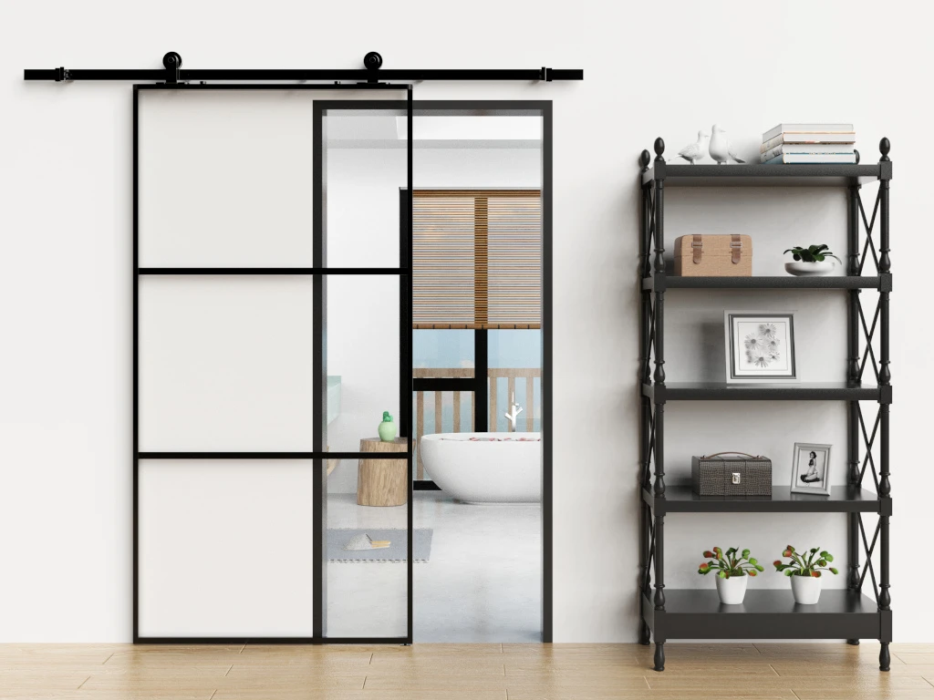 Die Tür ist aus transparentem ESG-Glas gefertigt und ist dadurch sehr lichtdurchlässig. Sie verfügt über einen Aluminiumrahmen, der ihr eine hochwertige Optik verleiht.