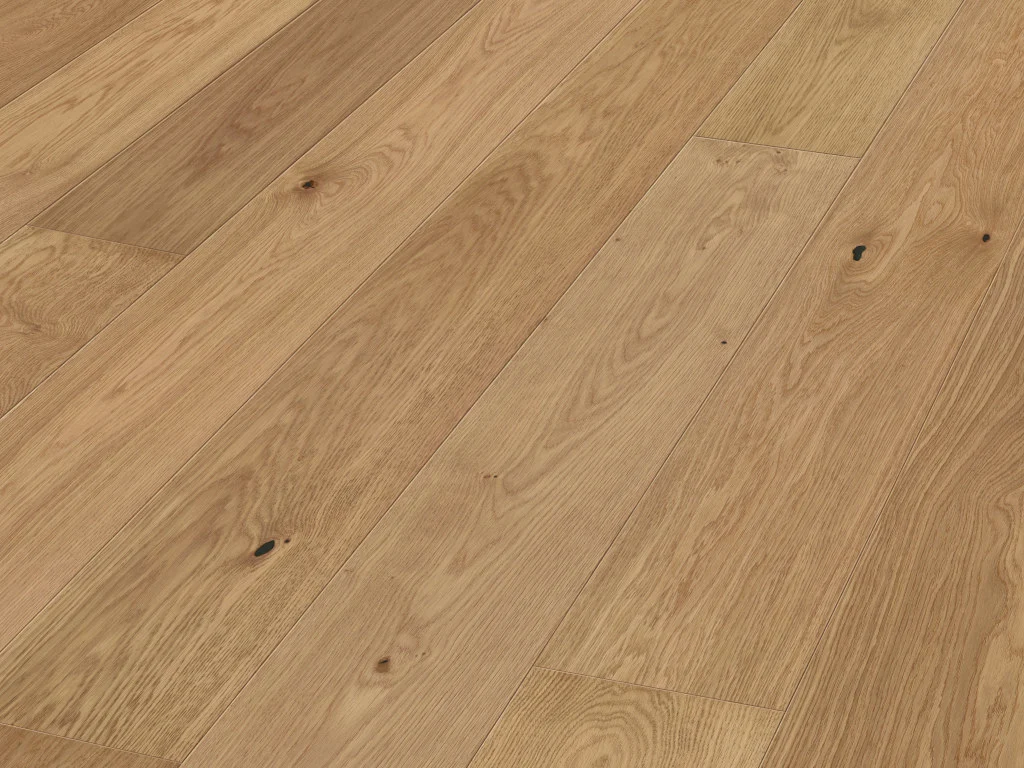 In dieser Sortierung bieten wir bewusst Oberflächen mit Farb- und Strukturspiel, die den natürlichen Charakter des Holzes betonen. Gesunde, festverwachsene Äste, Splint- und Braunkernanteile gehören zum lebhaften Gesamtbild. Unsere Eiche-Landhausdielen sind in dieser Sortierung splintfrei. Äste werden ausgespachtelt. Vereinzelt können kleine, nicht spachtelfähige Äste und Risse vorkommen.