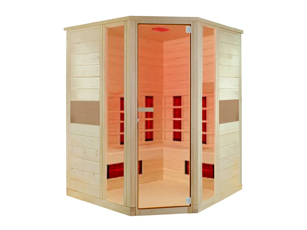Kanadisches Hemlockholz ist sehr widerstandsfähig und wirkt durch das enthaltene Öl auf natürliche Weise entspannend. Die warmen Farbnuancen sorgen für eine wohlige Atmosphäre.