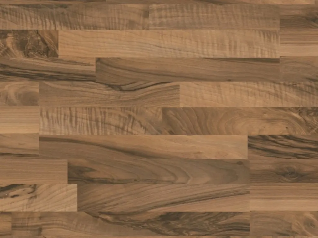 Die authentische Nussbaum-Optik des Dekors besitzt einen intensiv warmen Ausdruck, der behagliche Geborgenheit schafft.