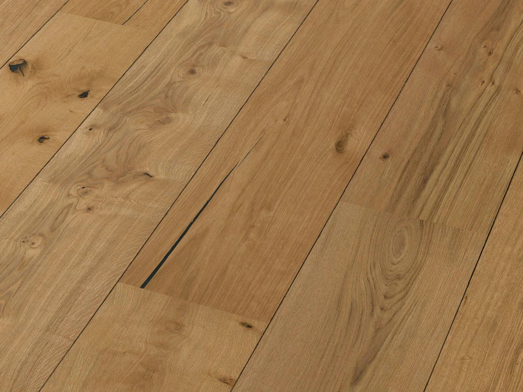 Die Sortierung bietet ein authentisches Erscheinungsbild. Farb- und Strukturspiel, vereinzelte Splintanteile und gesunde Äste sind weder in der Häufigkeit noch im Durchmesser limitiert und schaffen eine authentische und natürliche Optik. Astausbrüche und Risse werden mithilfe der Wood-Powder-Technologie ausgebessert. Die tiefe Bürstung erzeugt eine ganz neue Oberflächenhaptik und rundet den natürlichen, authentischen Gesamteindruck ab.